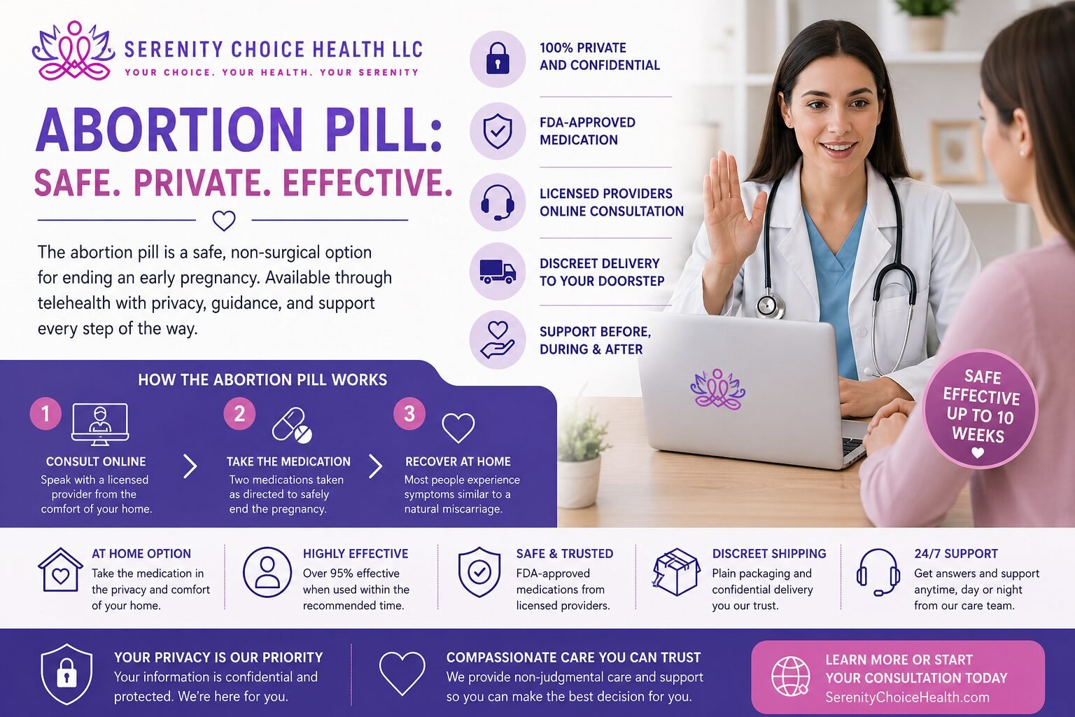 Serenity Choice Health is a licensed reproductive healthcare provider serving patients throughout Illinois. The clinic provides medication abortion services as well as in-clinic abortion procedures under the supervision of experienced healthcare professionals. During consultations, patients receive information about treatment options, eligibility requirements, and recovery expectations. Serenity Choice Health maintains a confidential healthcare environment where individuals can access professional medical guidance and support. All services are delivered according to Illinois healthcare regulations and recognized clinical standards to ensure responsible and evidence-based reproductive healthcare.